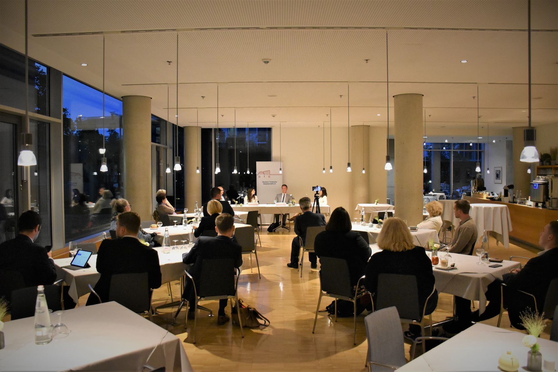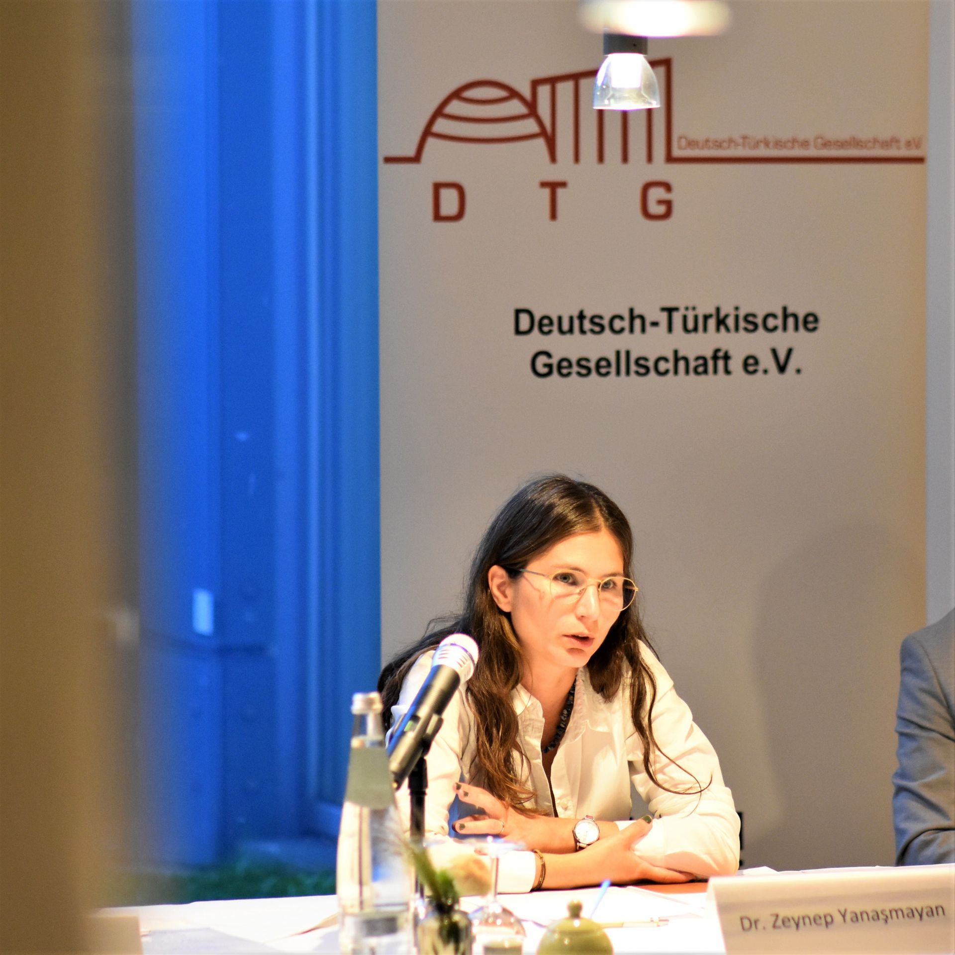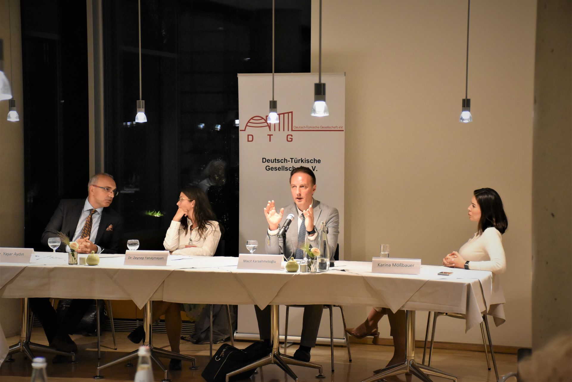 Die Gäste, darunter Bundestagsabgeordnete, -mitarbeiter aber natürlich auch Mitglieder und Freunde der DTG waren ins Jakob-Kaiser-Haus des Bundestages gekommen, um mit mir und zwei geladenen Expert:innen ins Gespräch zu kommen: Dr. Yasar Aydin von der Stiftung für Wissenschaft und Politik (SWP/CATS) und Dr. Zeynep Yanasmayan vom Deutschen Zentrum für Integrations- und Migrationsforschung (DeZIM). Die Moderation des Abends übernahm Karina Mössbauer (Chefreporterin Politik, BILD Zeitung).