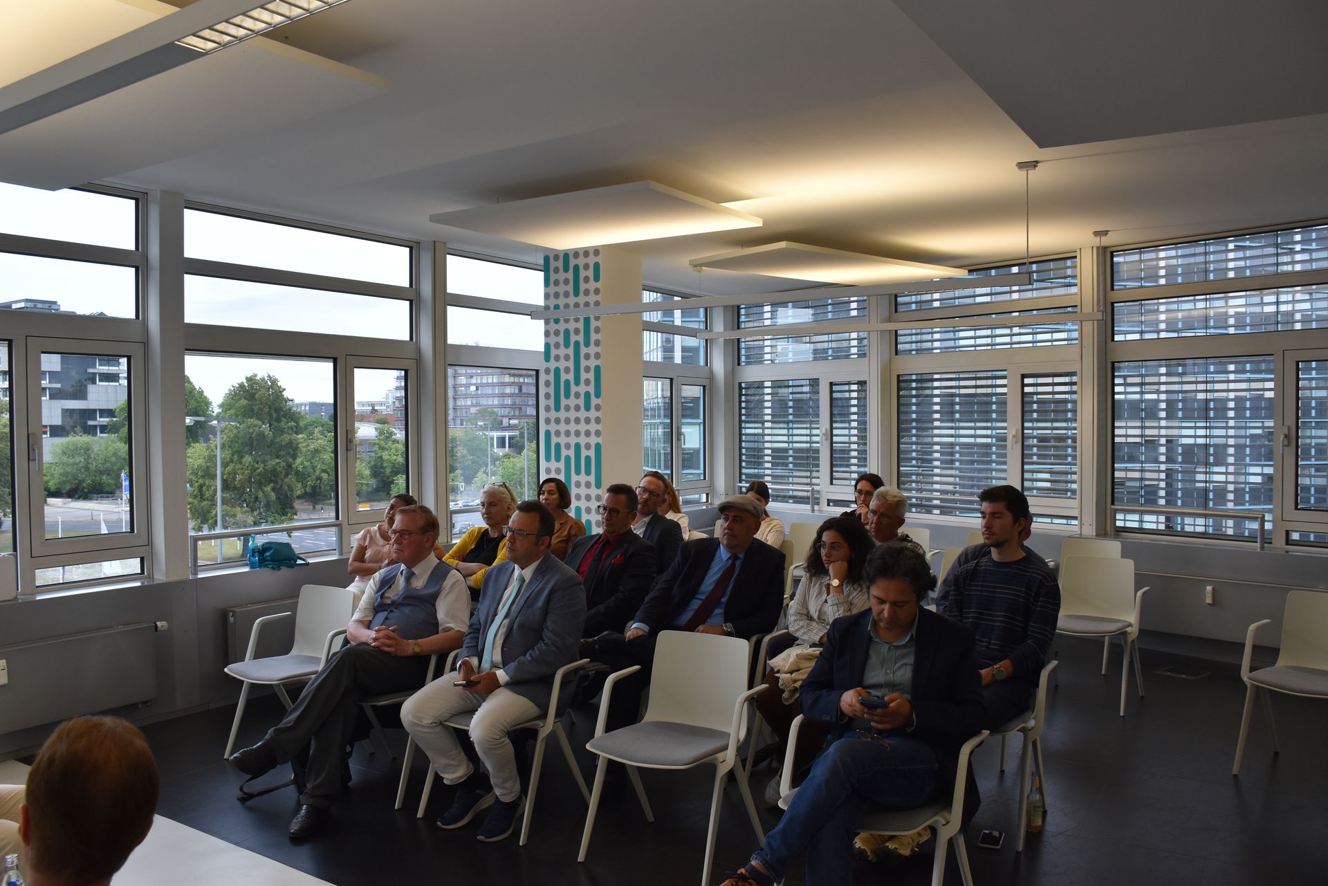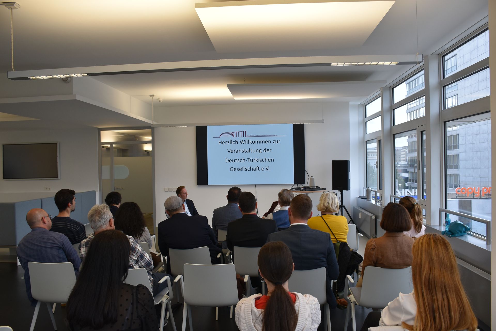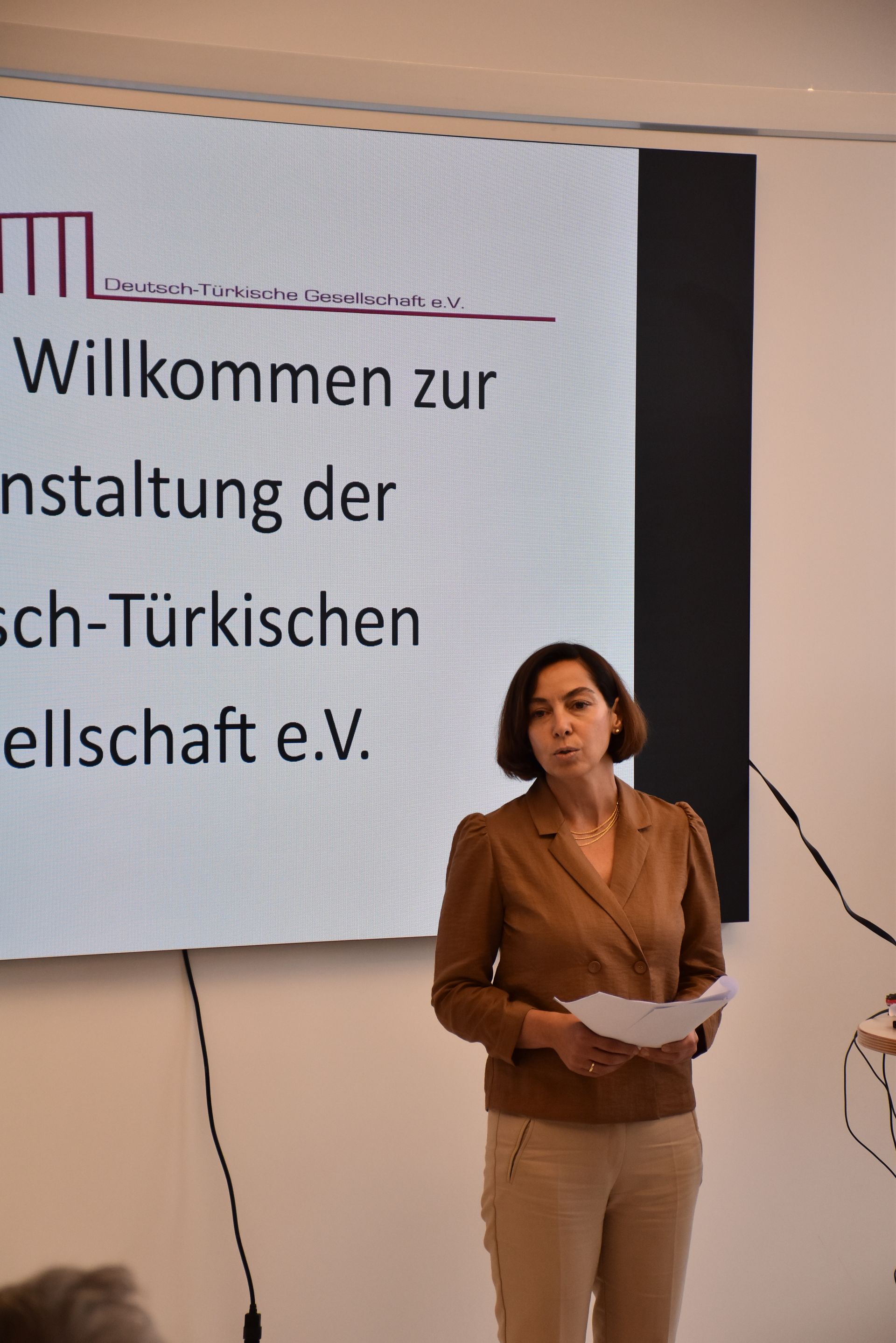 Die Veranstaltung fand im Saal des ZEKI – Zentrum für erlebbare künstliche Intelligenz statt. Dr. Martin Manzel, stellvertretender Vorsitzender der DTG, betonte in seiner Begrüßung, dass die jüdische Gemeinschaft in der Türkei immer noch deutlich präsent ist, auch wenn sie stetig kleiner würde. Die Anwältin und DTG-Mitglied, Hayriye Manzel-Yerlikaya trug das Gedicht „Bleibtreu“ der jüdischstämmigen Dichterin Mascha Kaleko auf Deutsch und Türkisch vor.